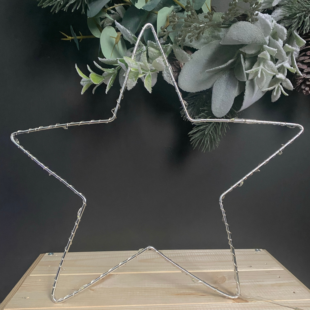 Available in gold or silver stars with options of coloured wire letters. In the colour options drop down menu the first colour stated is the colour of stars and the second colour is the wire.