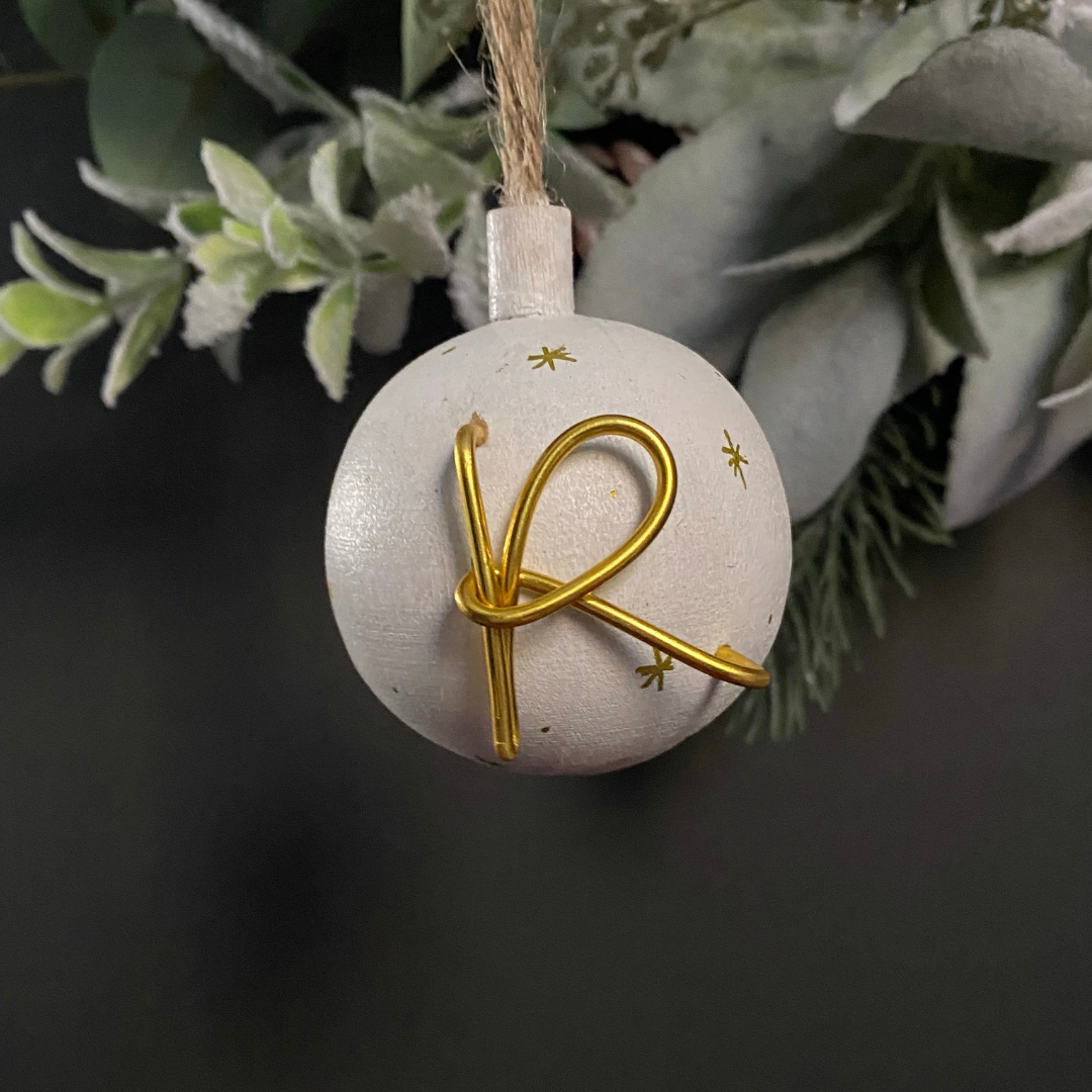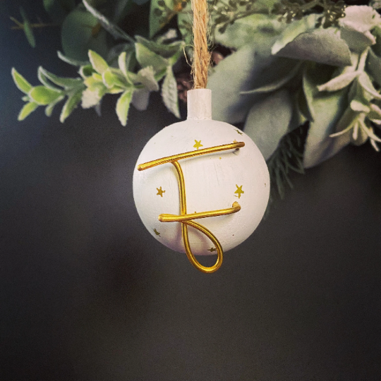 Why not add that personalized touch to your tree this year? Or you could even gift it to someone else. This personalized wooden bauble is hand painted, the stars are drawn on one by one and the wire letters are drilled all by me (Kirsty). If your looking for something that’s been made with love - you have found it.