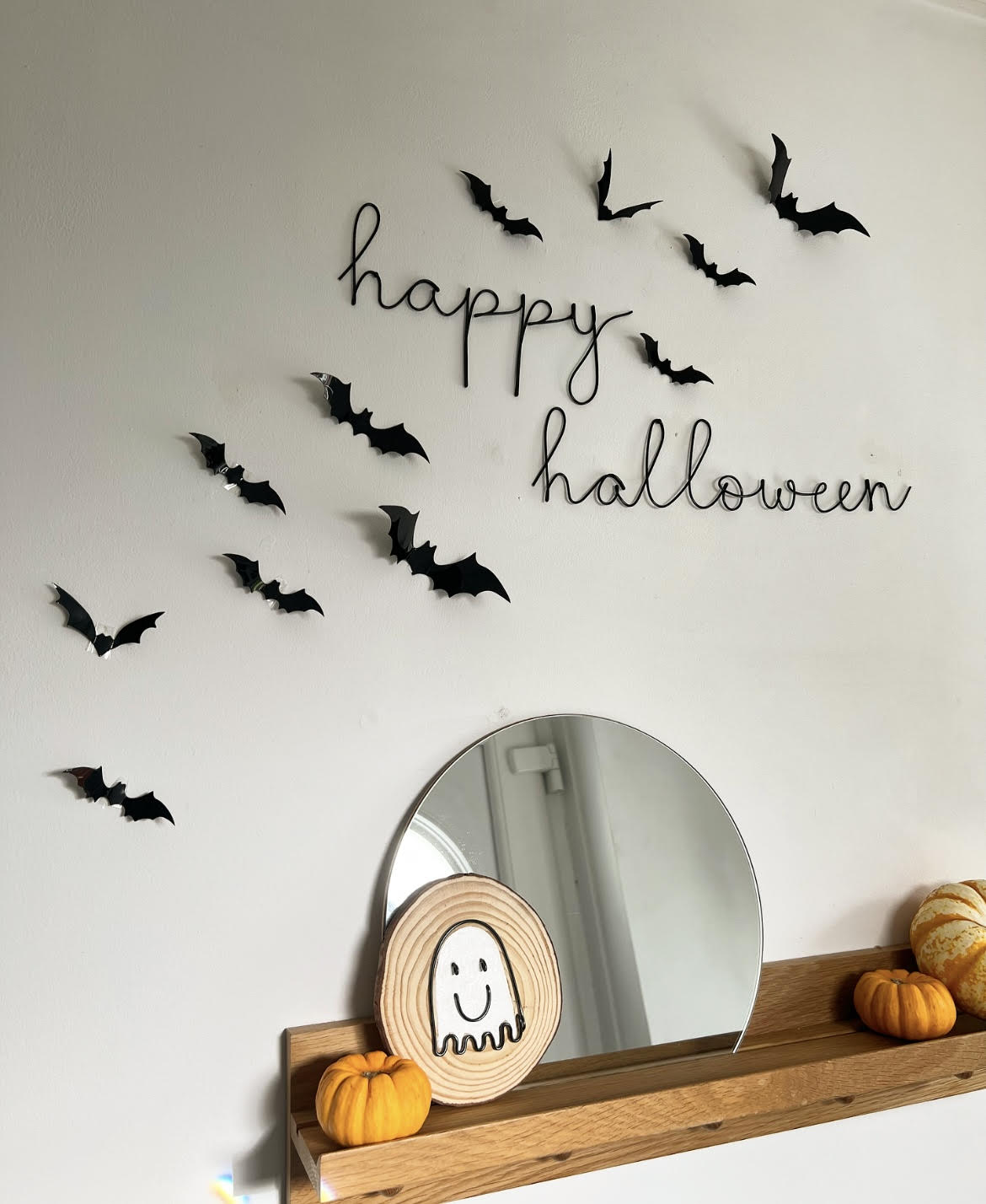 Perfect for a pop up Halloween porch! Pictured is size small. (Words only).