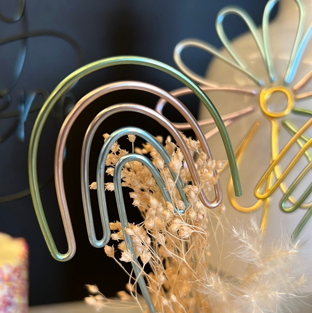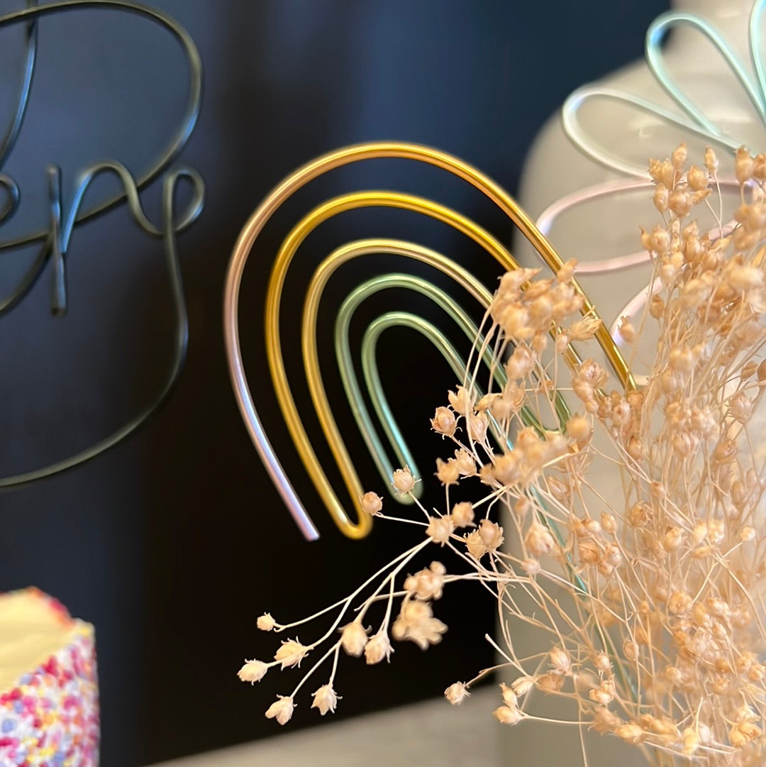 A colourful addition for any celebration 🌈 use this cake topper year after year by cleaning it after use and returning to the packaging. Alternatively, use it as a plant topper! Suitable for both indoors and outdoors. *colours will vary due to the style of this rainbow wire*