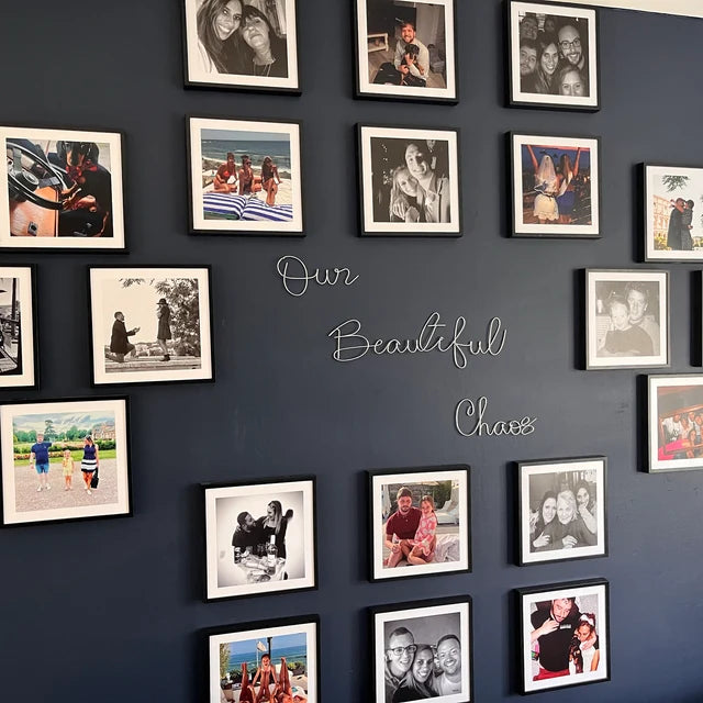 “Our Beautiful Chaos” wire writing in Gladys font, available in 3 sizes. Perfect as a delicate focus for an empty wall or to add to a gallery area and tie the room together.