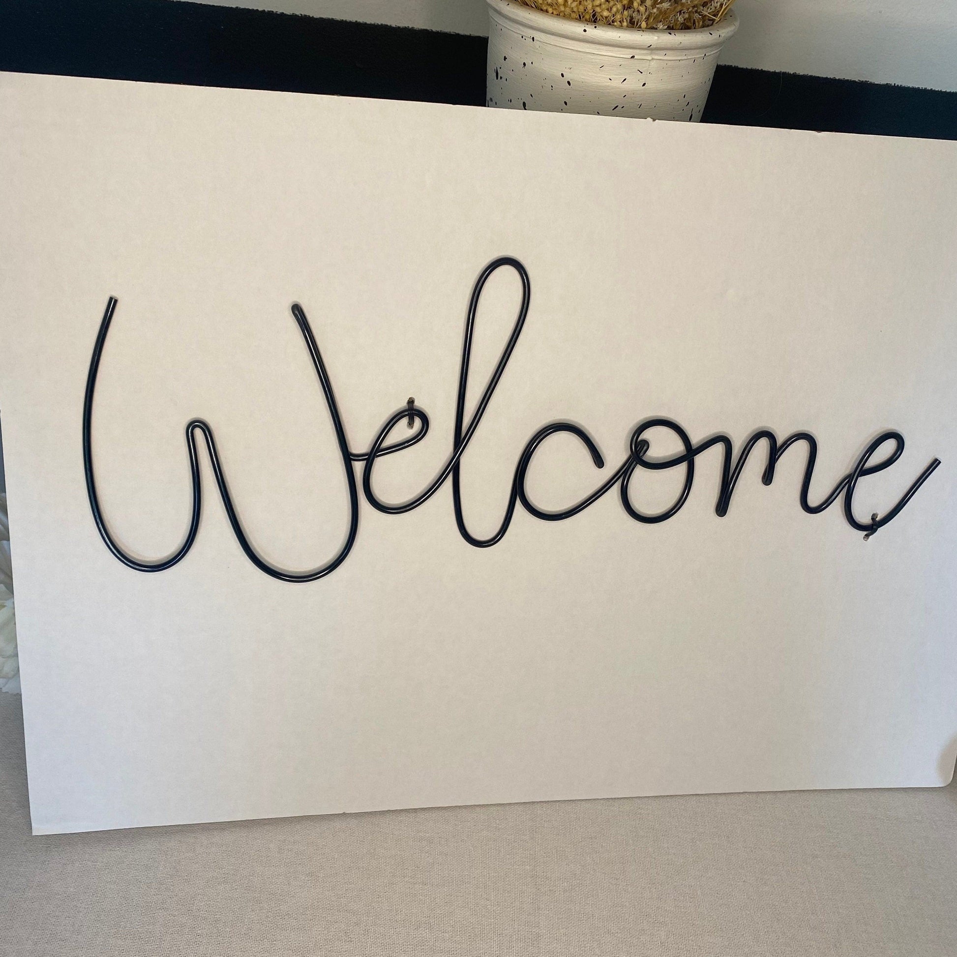 Welcome sign, wire words. Perfect for an entrance way, porch, or welcome area. Great alternative to prints or pictures or as a way to fill space on a gallery wall! Please select a colour and display method for your order and this will be hand made just for you! If you are unsure about the hanging display options I have a highlight on my Instagram which could help and you can also have a look at previous custom orders too. @allwiredup__