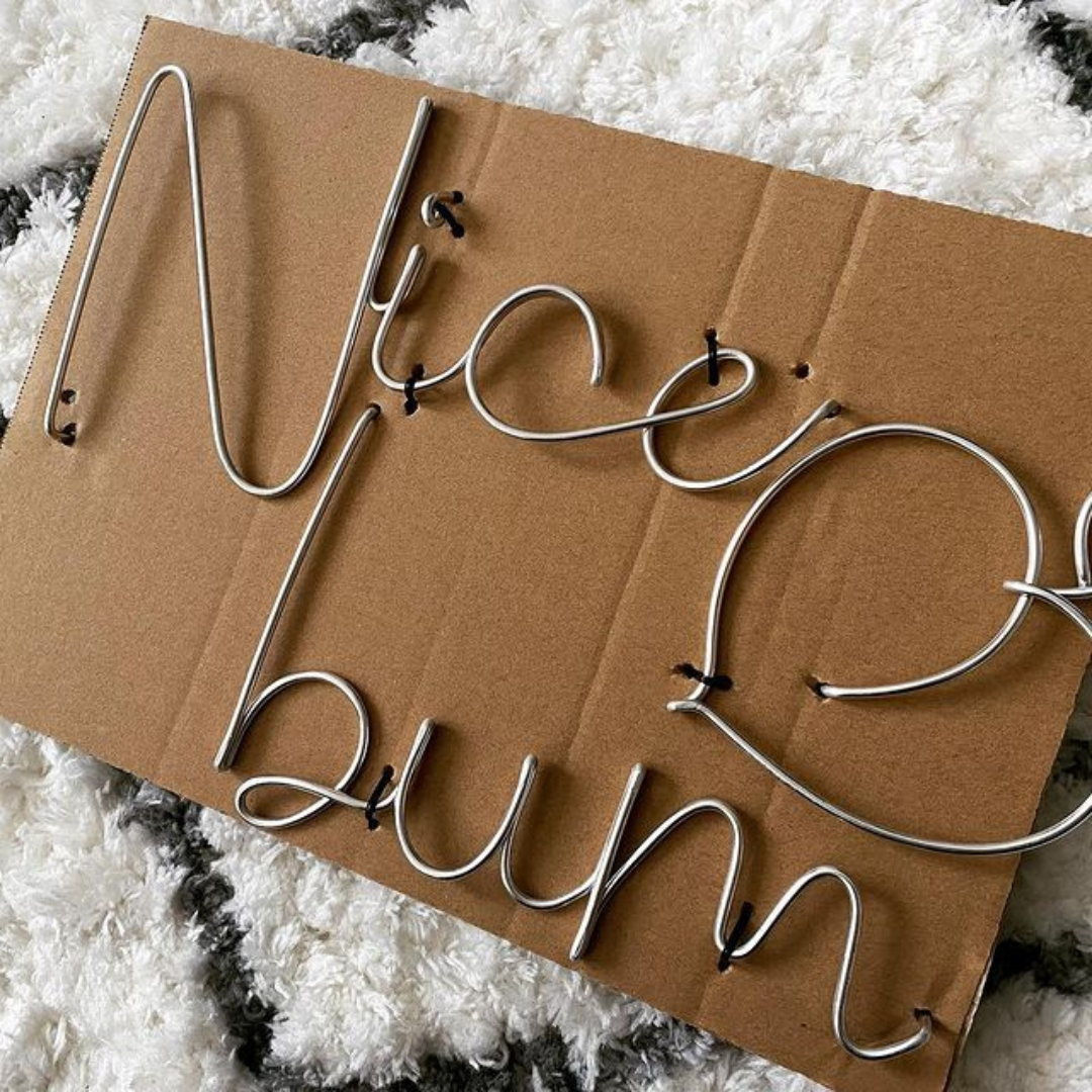 “Nice bum” wire writing in Edellyn, peach included. Perfect for the back of the door or to fill a space as an alternative to a print or other wall art.